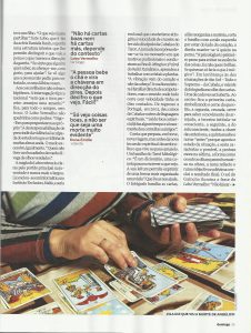 Conta que prepara, em breve, nova viagem, mas antes da nova incursão espiritual desembrulha o que vive no pano amarelo. Um baralho do Tarot Mitológico. “É um dicionário, uma caneta para eu escrever o que vejo. A sua leitura permite exprimir de uma forma mais organizada uma visão”. Que Deus nos ajude. O fotógrafo baralha as cartas, aliás reorganiza a matéria, corta o baralho com a mão esquerda por estar do lado do coração, a direita manter-se-á quieta na perna. “A psicologia é o primeiro passo para entrar na essência das coisas. Eu não quero brilhar. Se quisesse só faria o que é mágico”.