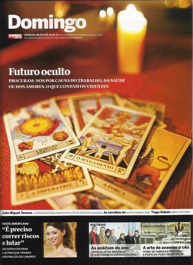 Em lembrança às dez emanações de Ain Sof – Todo o Supremo – da Cabala, o valente da fotografia escolhe dez cartas. Uma de cada vez será aberta. Ao centro fica a primeira carta, simbolizando o cerne da questão, a segunda, cruzada, serve para saber o movimento do arrojado, a terceira intitula-se consciente, a seguinte, a do subconsciente, traduz a chave das anteriores, a quinta recebe o nome “antes” porque aponta o estado da situação, a sexta caracteriza o possível, a postura mora na sétima, a forma como os outros olham para nós encaixa na oitava, a nona reflecte o rumo/objectivo e a décima conclui o resultado final. O sol do Guincho ilumina a frase do Lobo Vermelho: “Não há cartas boas ou más. Depende do contexto”. E não há futuro. Melhor assim. Tudo em aberto.