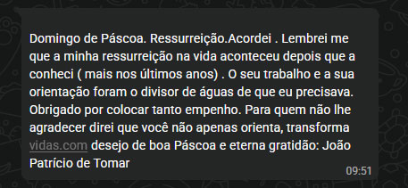 Com desejo de boa Páscoa e eterna gratidão.